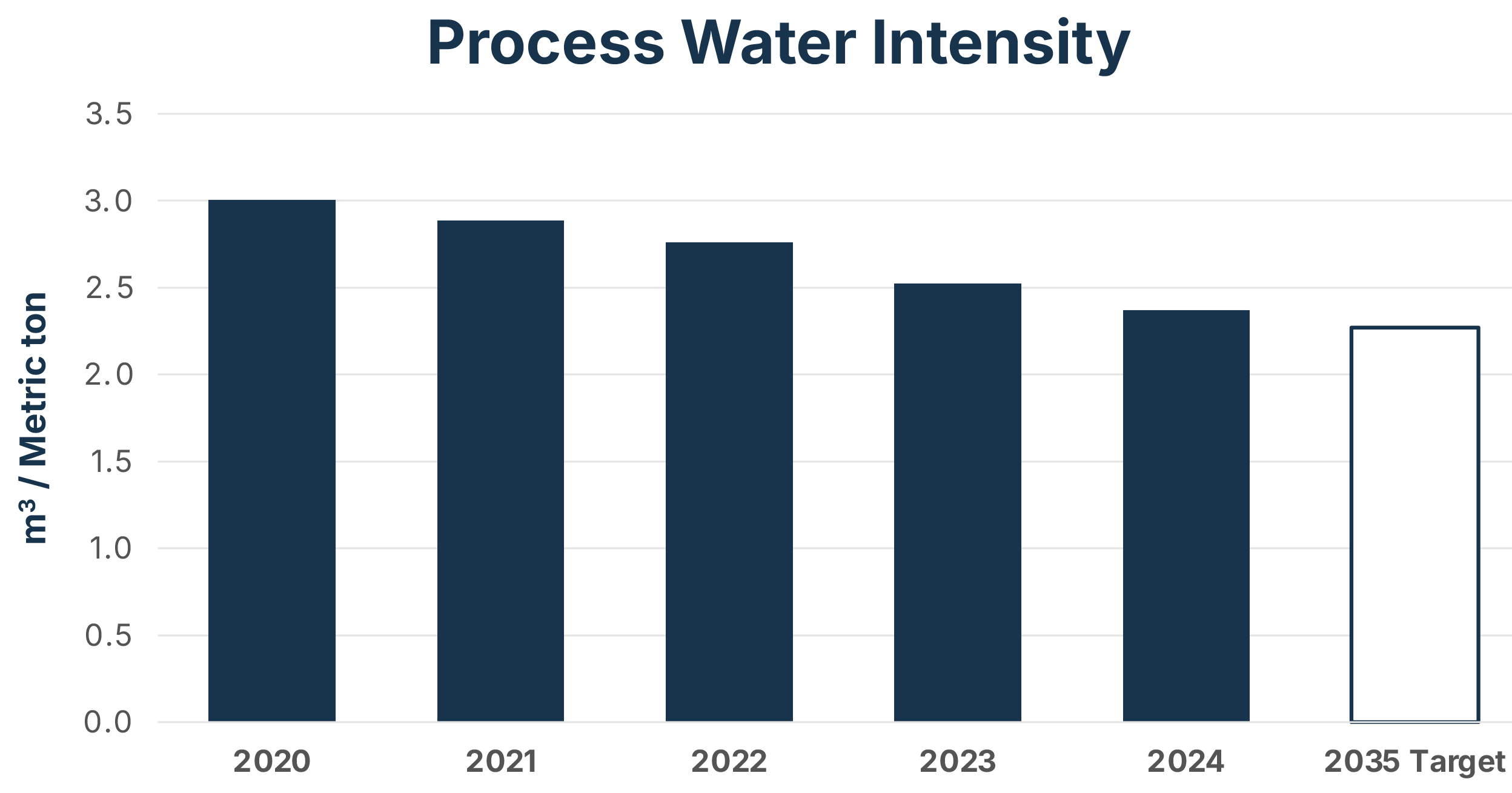 KPI: By 2035, reduce process water intensity by 10% vs. 2023