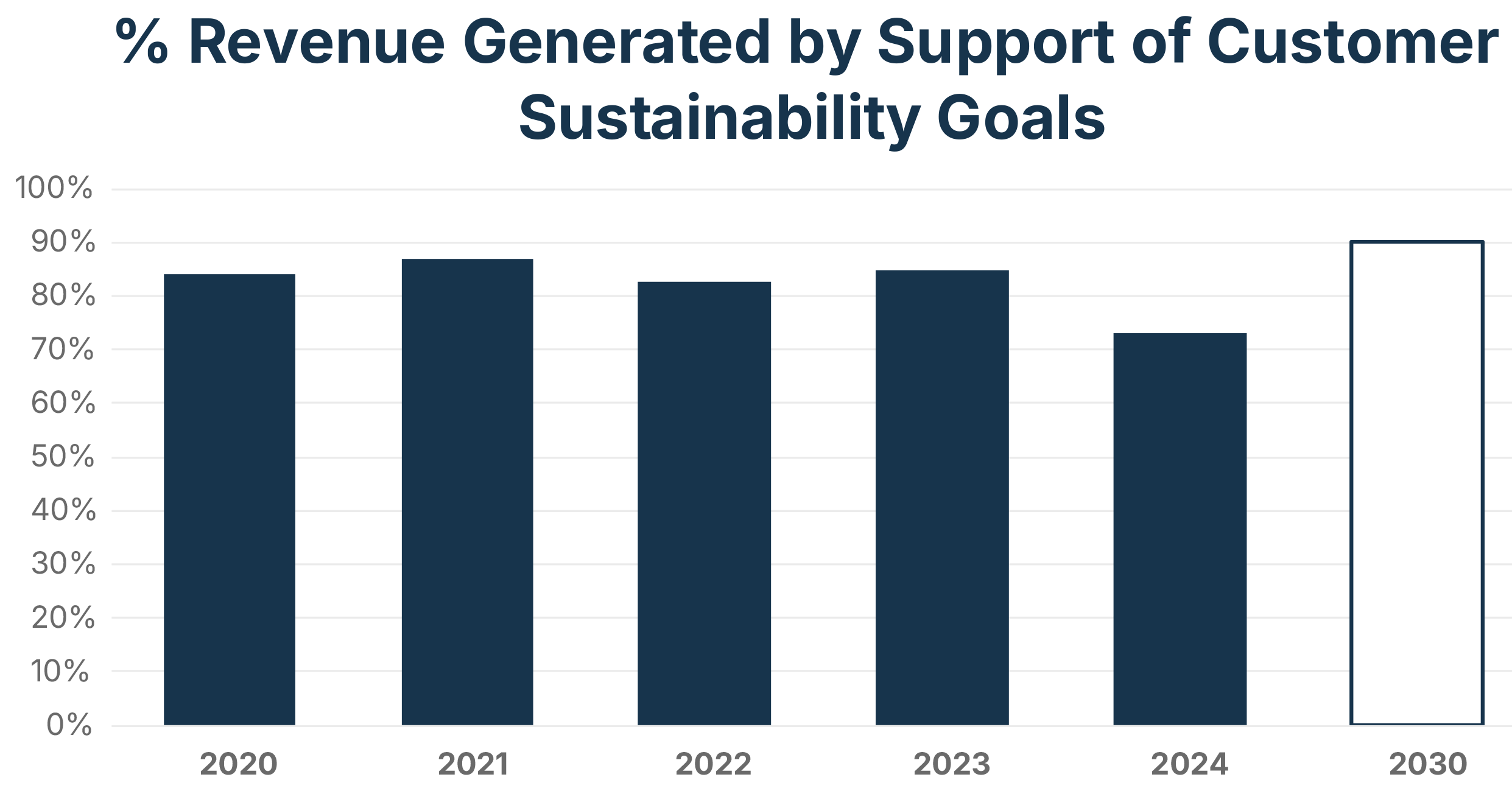 KPI: By 2030, 90% of revenue generation will result through support of customers’ sustainability goals